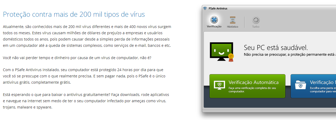 Único antivírus completo, rápido e totalmente gratuito do Brasil. É leve, simples de usar, automático e em Português. |